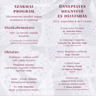 ″A CSIPKE ÜNNEPE – ARANYCSIPKE DÍJ ÁTADÁS″2012. szeptember 04. | kedd″A CSIPKE ÜNNEPE - ARANYCSIPKE DÍJ ÁTADÁS″